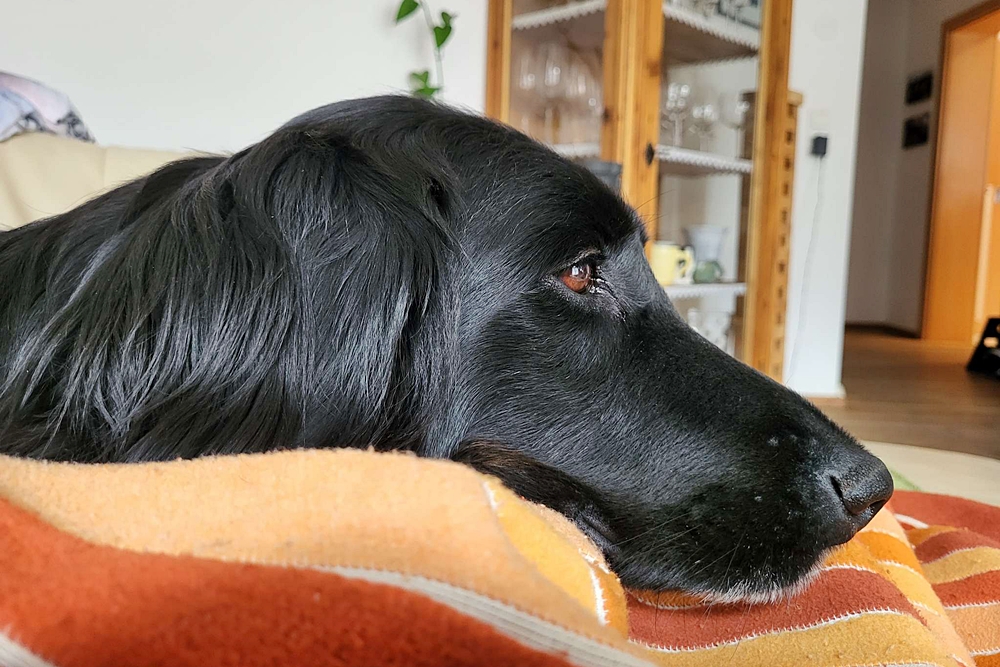 Bis gestern abend war alles ultra entspannt (das Bild ist von gestern) Am Abend habe ich dann mein Bett neben der Wurfkiste von Mica aufgebaut. Das fand sie hervorragend und ist gut in der Wurfbox geblieben. Die Nacht war unruhig, sie war am Betti bauen, hecheln und wieder schlafen. Zweimal wollte sie raus und morgens 5 Uhr ist sie dann gleich mal unter der Hecke verschwunden. Mit gutem Zureden kam sie wieder hervor und dann natürlich an die Leine. Ich habe gleich Temperatur gemessen, die ist am fallen. Aber wir haben noch gut geschlafen — wir beide. Heute früh hat sie das Futter verschmäht. Eigentlich wollte ich heute nochmal zum Tierarzt fahren, um sie zu wiegen, das lassen wir jetzt mal und harren der Dinge die jetzt kommen. Ich werde mich hier erst wieder melden, wenn Baby — Alarm herrscht. Die Spannung steigt.