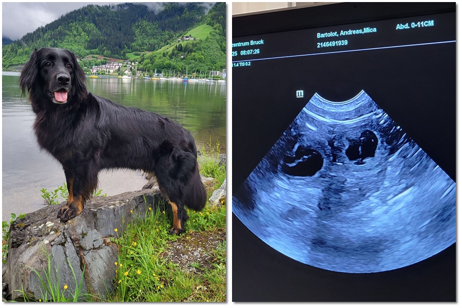 Gewissheit ist schon fein, auch wenn wir es irgendwie nie bezweifelt haben. Wir waren heute zum Ultraschall und sofort sind uns drei Baby-Blasen angesprungen. Mica trägt und es sind mehr als eines — das hat uns gereicht und wir haben nicht länger geschaut. Somit war der Tierarzt-Termin für alle sehr entspannt und Mica durfte extra viele Kekse essen. Wir freuen uns sehr, sind gespannt und werden die Zeit daheim genießen. Mica ist so sehr gut drauf, in Topform (noch) und hat aktuell 32kg Gewicht. Sie darf weiter moderat traineren, solange sie will und wir gehen ein bisschen Fährten. Natürlich keine Überbelastung, Sprünge oder wilde Ballspiele — das ist klar. Wir kennen sie ja gut und lernen sie nun noch von einer anderen Seite kennen. Kleine Mica, du wirst eine wunderbare Mama, da sind wir uns sicher.