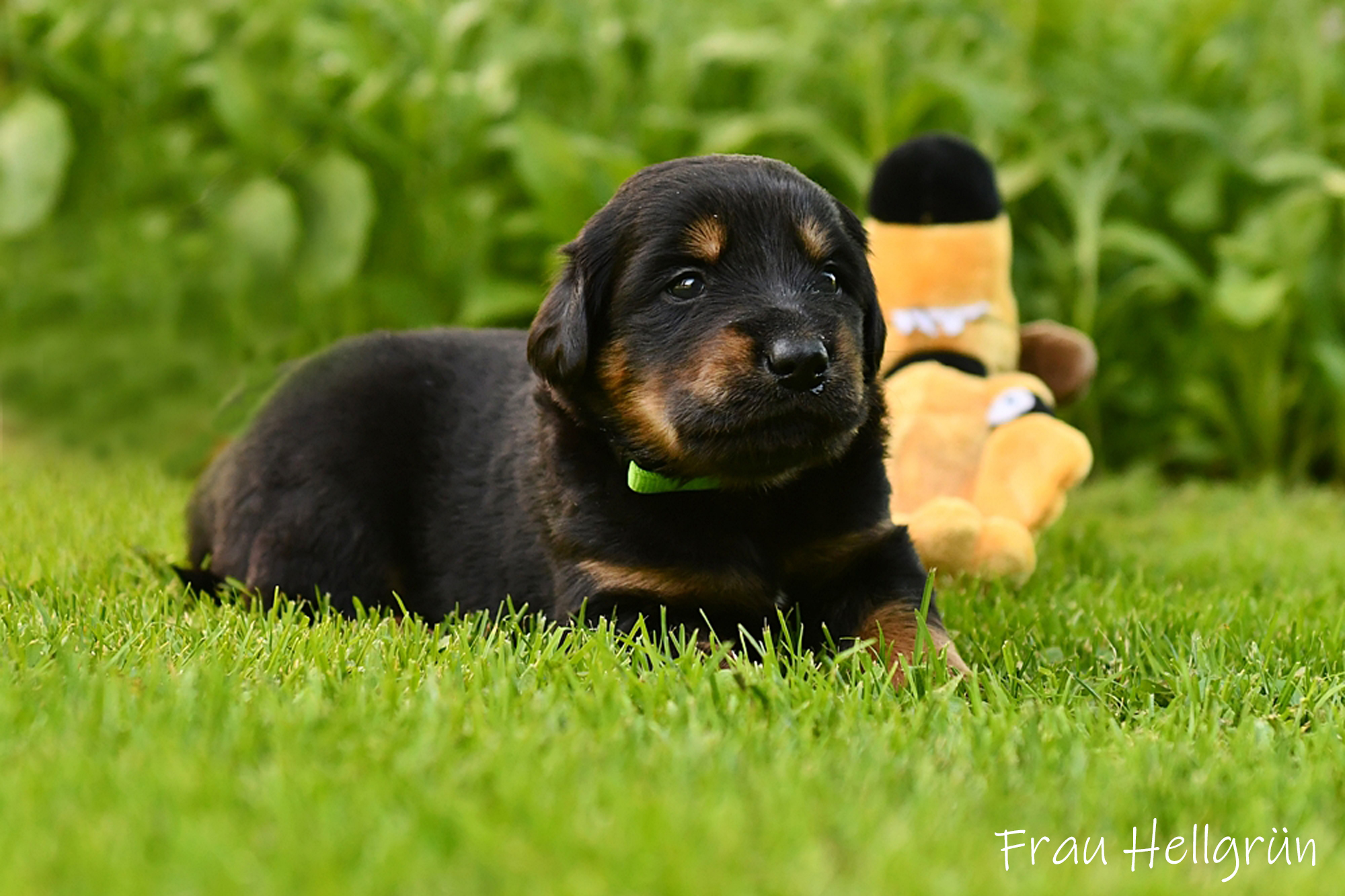 Mama Mica nimmt sich jetzt gerne eine Auszeit. Dabei klaut sie den Welpen auch regelmäßig das Spielzeug. Aber sie haben je zum Glück genug und dieses wird jetzt aktiv in Beschlag genommen. Die Entwicklung geht rasant, sie sind richtige kleine Hunde geworden und schnell können sie schon sein. Fressen geht prima und sie haben immer Hunger. 7 Minis haben bereits die 3kg geknackt, 2 sind kurz davor. Wir erweiteren jetzt Schritt für die Schritt den Auslauf mit neuen Dingen, die sie entdecken können. Und neugierig sind sie alle, es macht Spaß zuzuschauen. Wir haben wieder entzückende Einzelfotos gemacht. Die Zeit ist sehr intensiv und es wird immer aktiver hier. Wir lieben die Minis auf alle Fälle alle sehr.